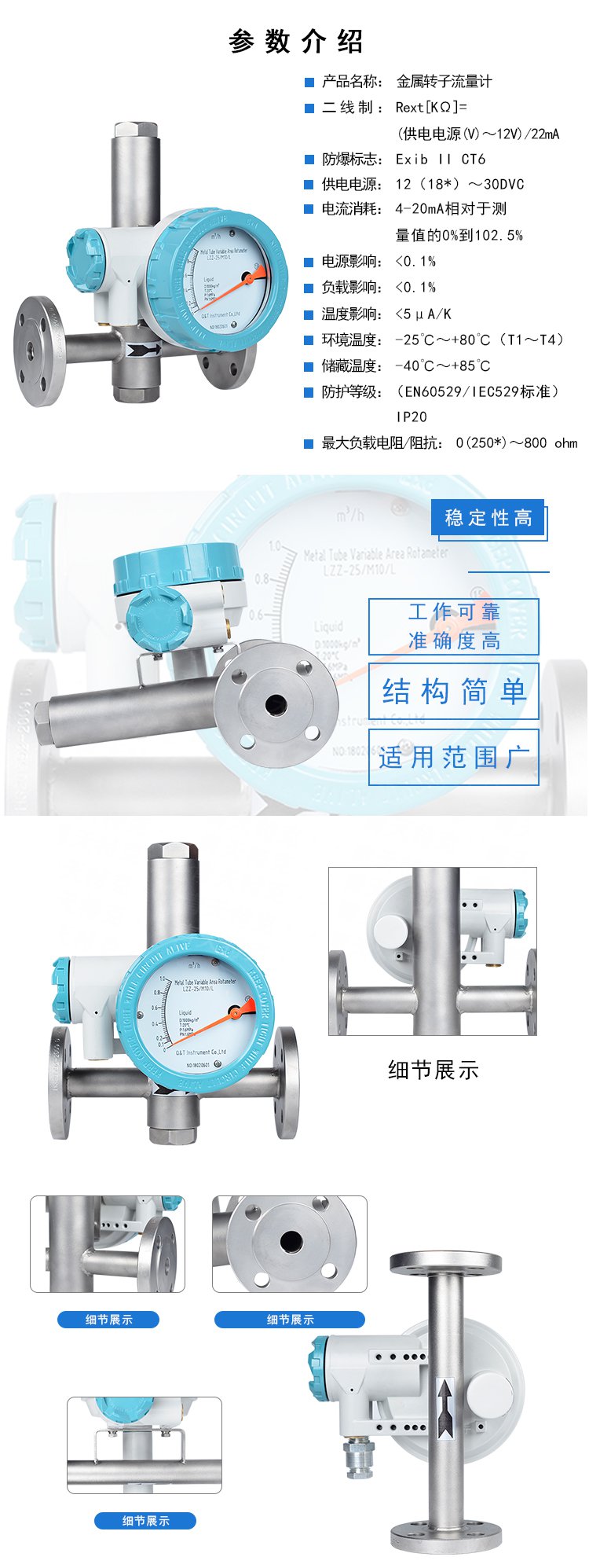 LZZ/D-CQ系列金屬管浮子流量計,采用可變面積式測量原理,適用于測量液體、氣體。全金屬結(jié)構(gòu),有指示型、耐腐型、高壓型、夾套型、防爆型。具有0-10mA、4-20mA的標準模擬信號輸出和現(xiàn)場指示。累積,數(shù)字通訊,現(xiàn)場修改測量參數(shù),不同的供電方式功能,帶有磁性過濾器和特殊規(guī)格品種。